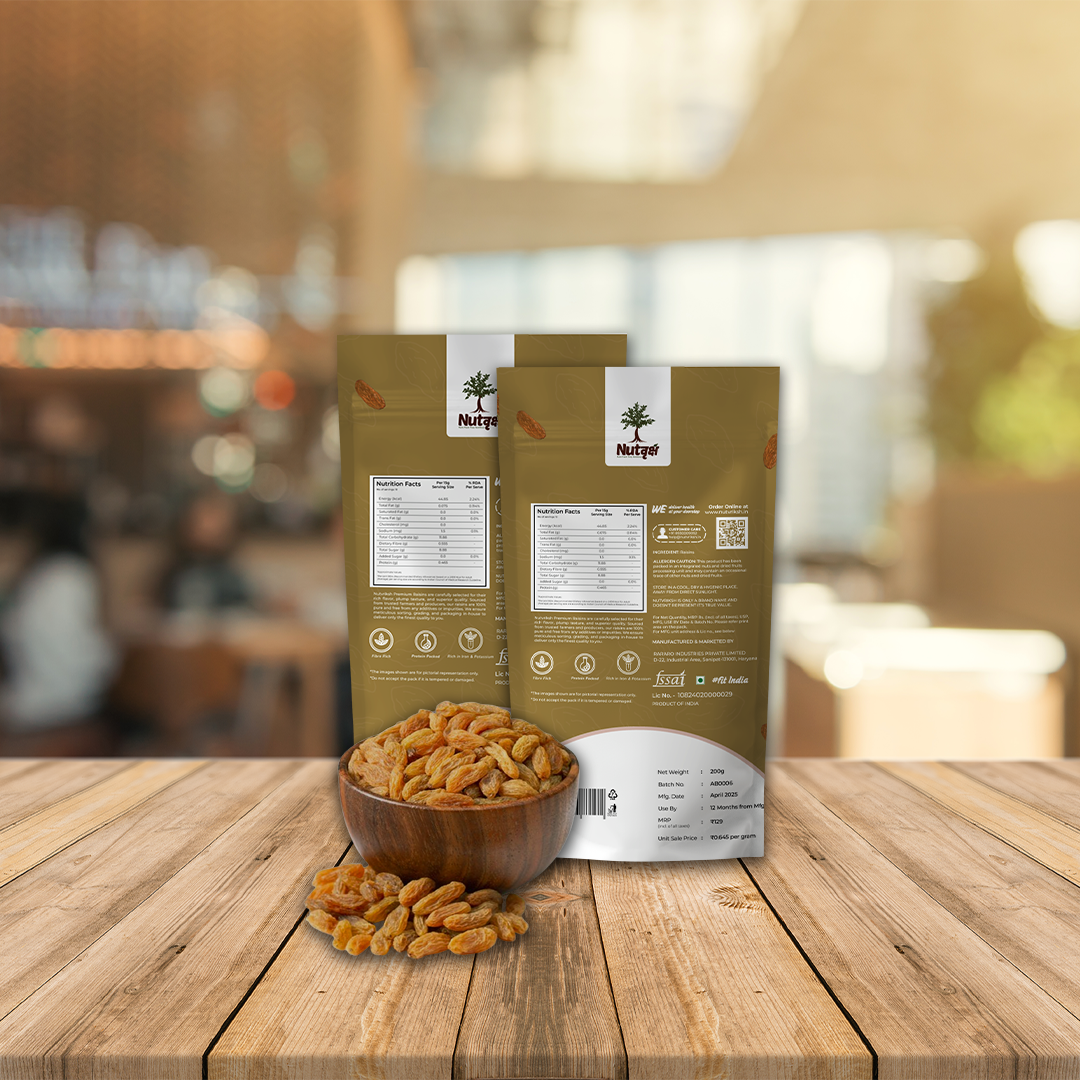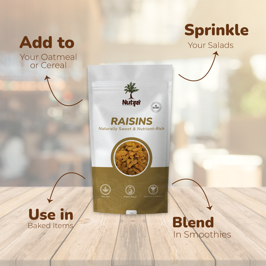Whether you're adding them to your breakfast bowl, desserts or simply enjoying them as a guilt-free treat, Nutvriksh Raisins offer the perfect balance of taste and health.